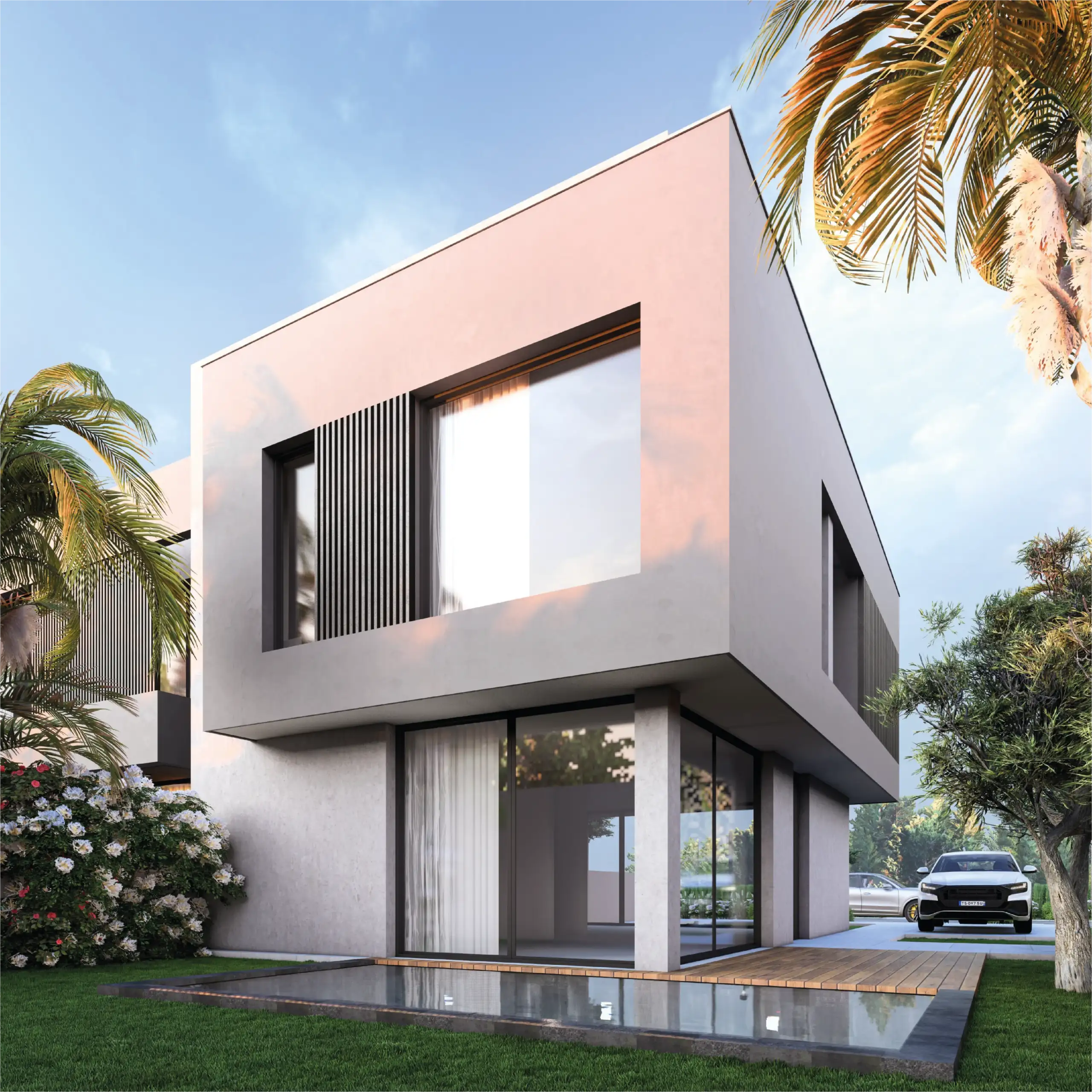 Composition : Ensemble résidentiel sécurisé avec villas jumelées et individuelles.