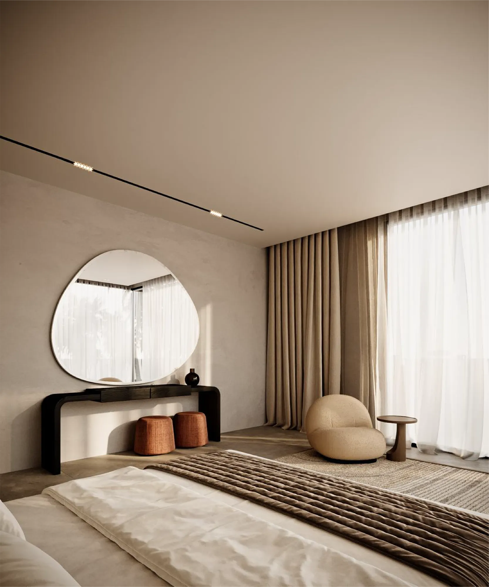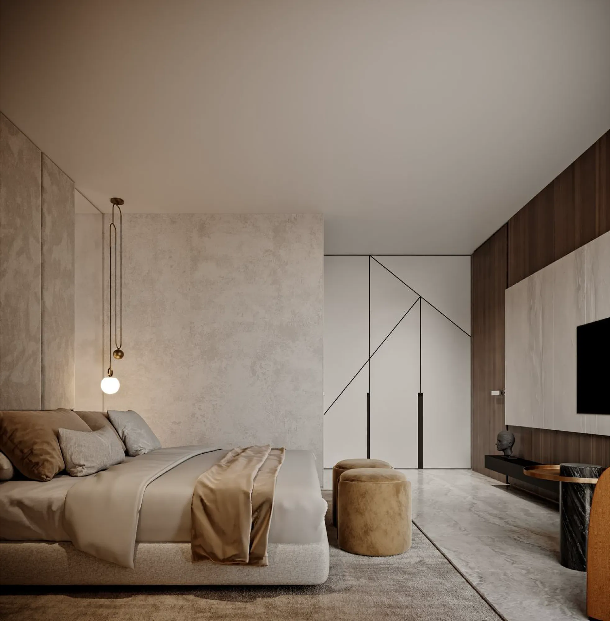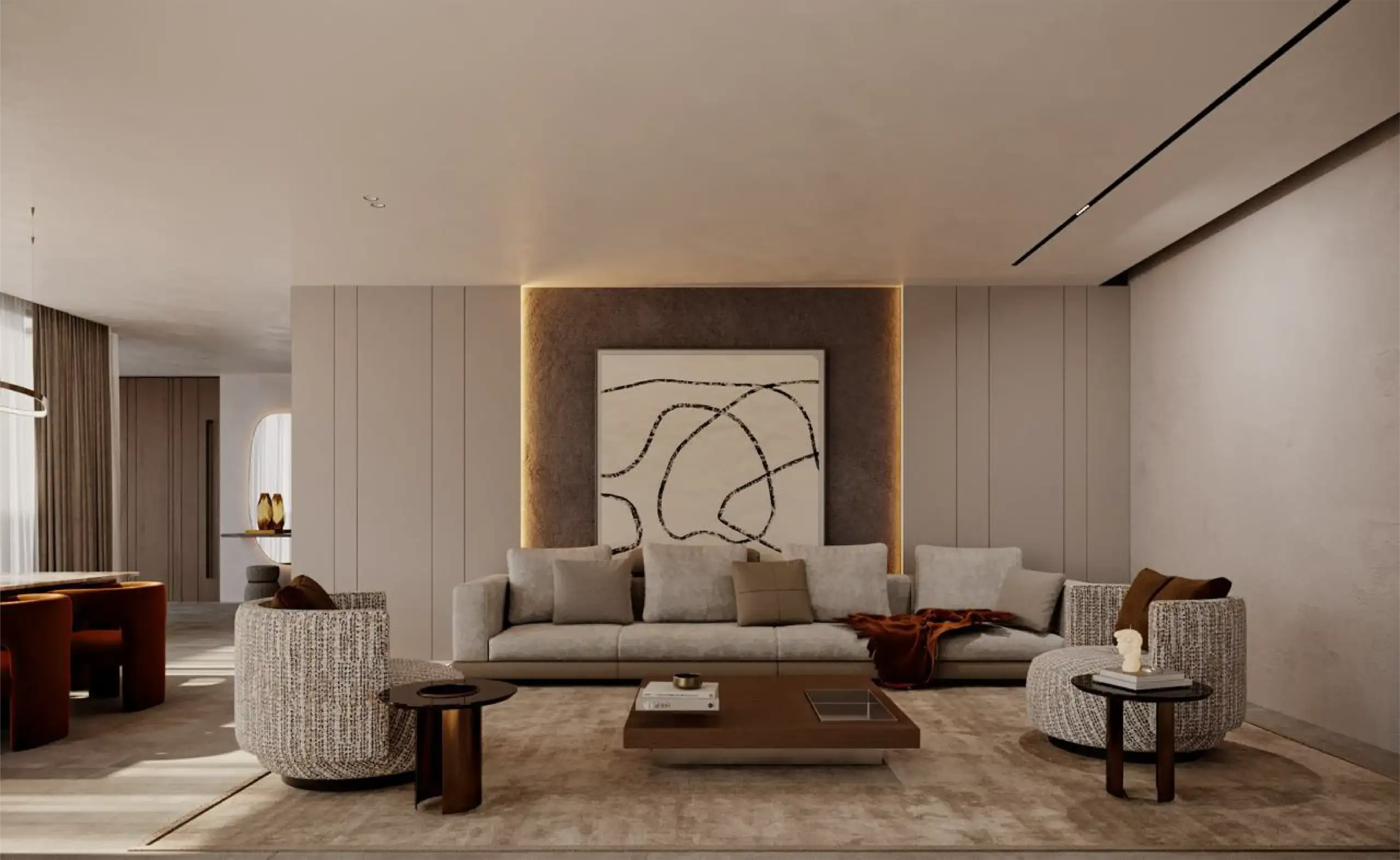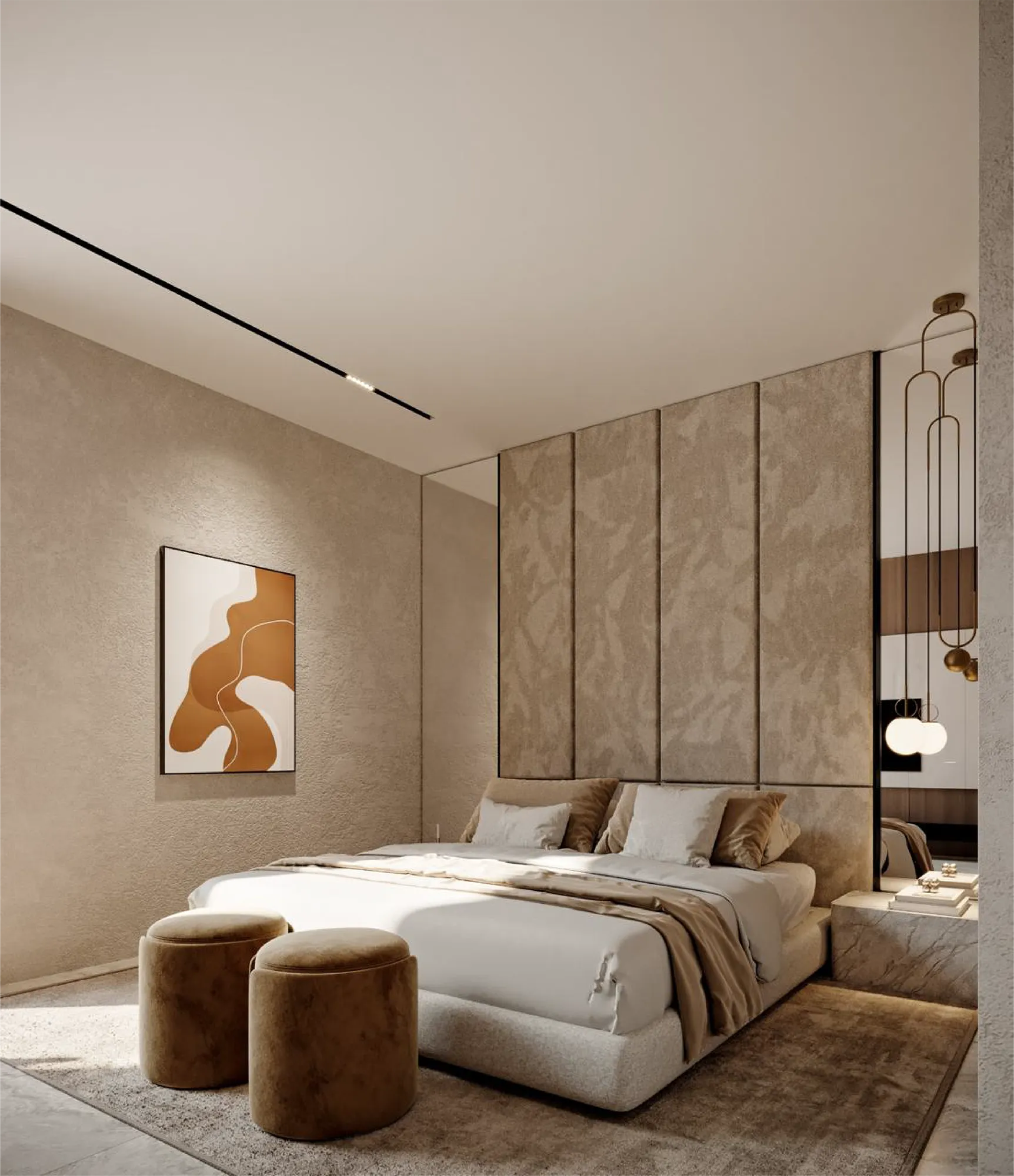 - Finitions : Sols et terrasses en carreaux 100×100 ou marbre, SDB en 60×120 ou marbre, plafonds blancs, faux-plafonds staff avec intégration CVC & éclairage.